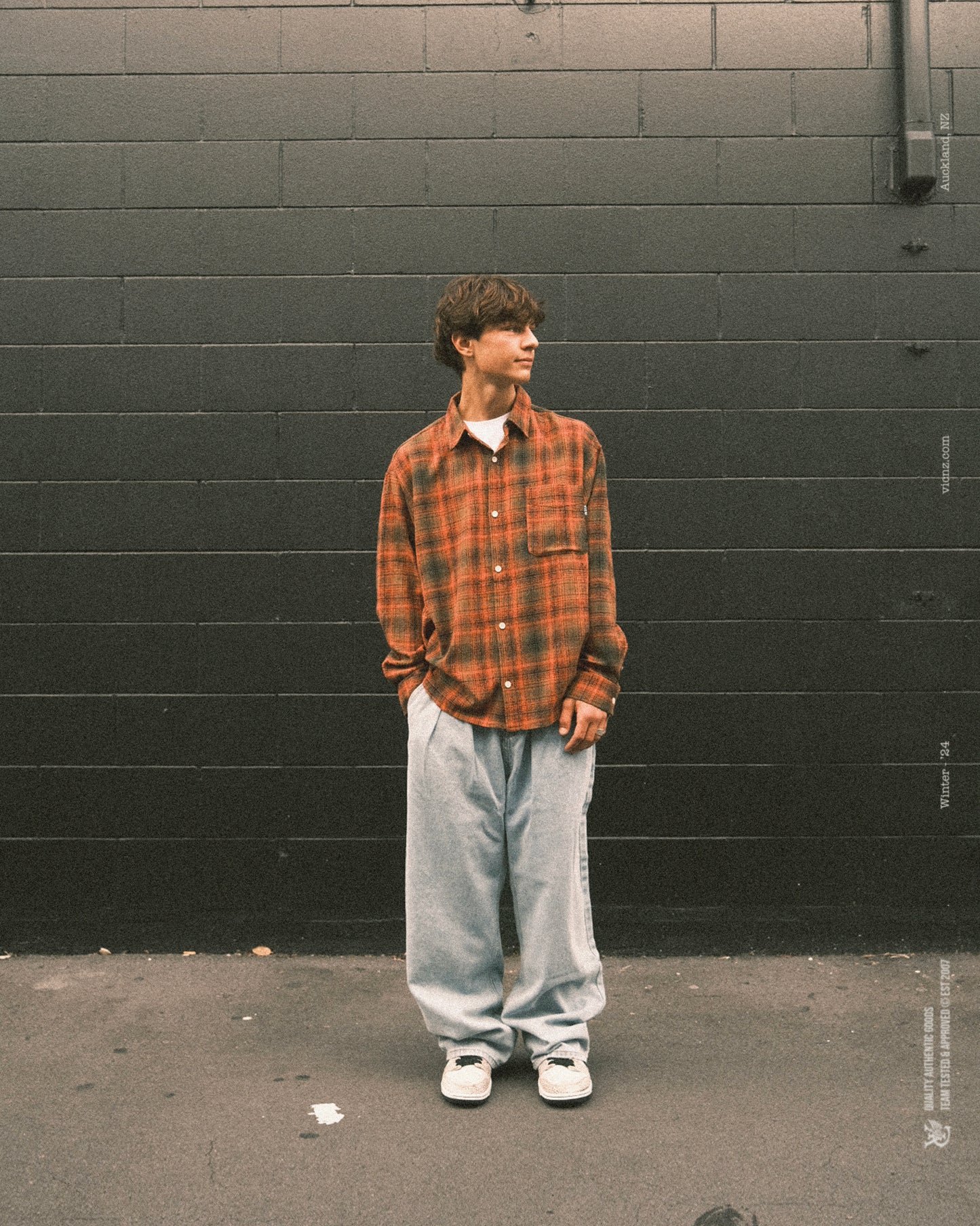 Bence is 5'7 and wears a size M Plaid L/S Shirt