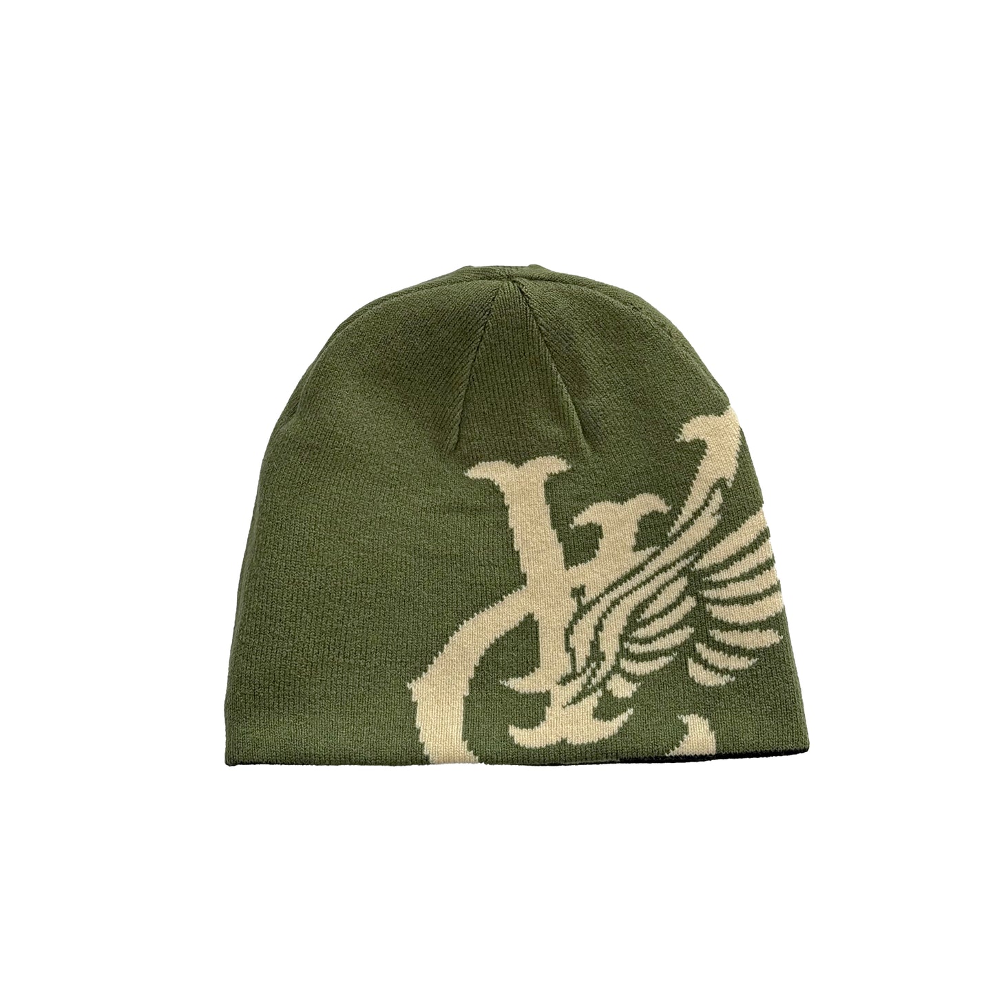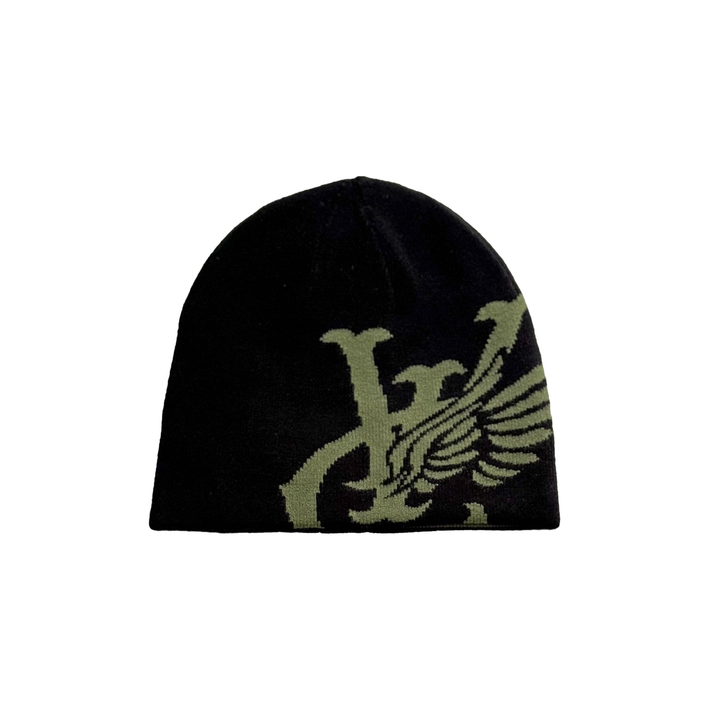 WING REVERSIBLE SKULL BEANIE - BLACK / OLIVE